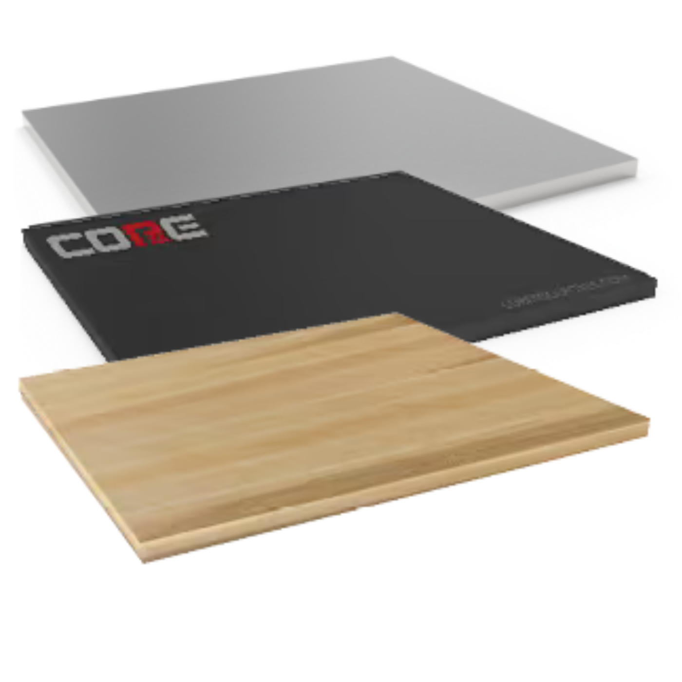 By default, your toolbox includes a rubber mat. You can upgrade to either a Canadian maple or stainless steel counter top.