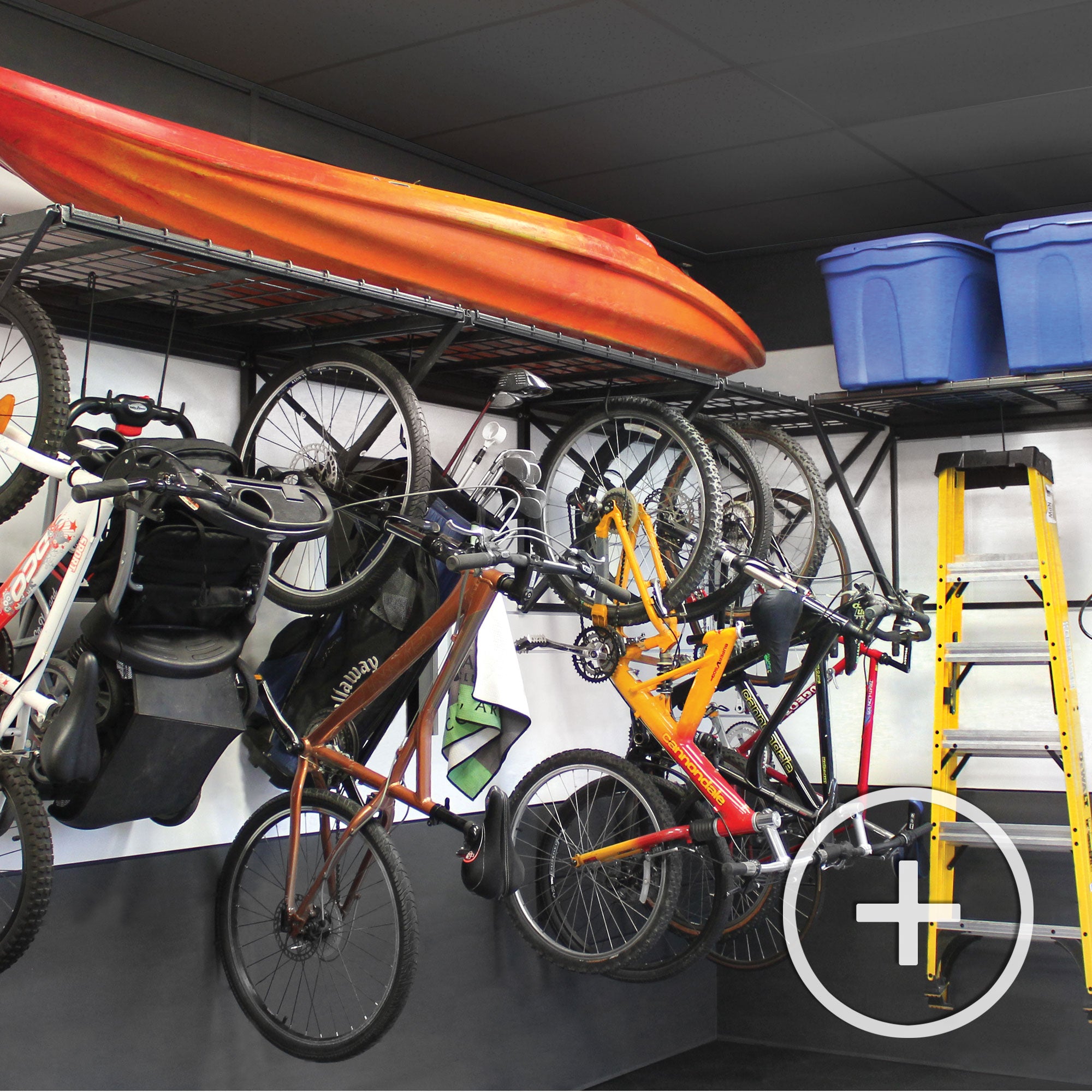 Our heavy-duty ProRack easily holds up to 800 lb. when installed directly into studs. No need to worry about your heavy, bulky items getting in the way anymore with the ProRack's patented design.